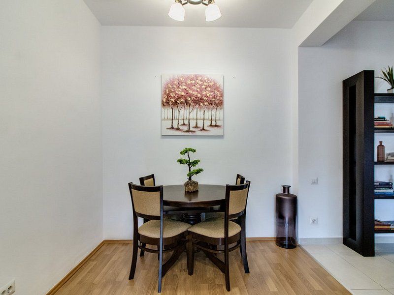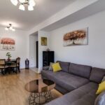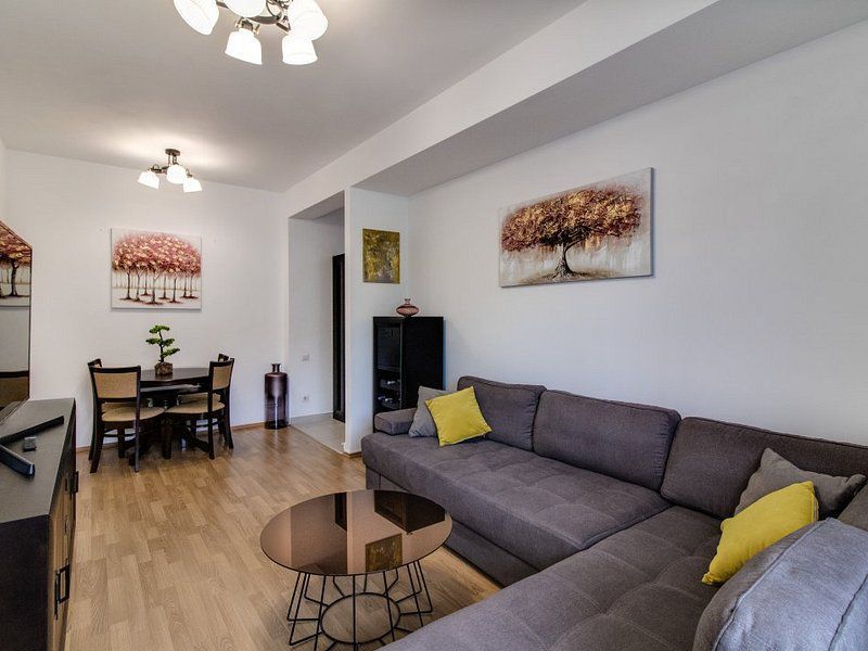 Locuinta are o suprafata utila de 55 mp. In interior gasim mobilier mobexpert nou, 3 dressinguri, un tv 4k de 138 cm diagonala si electrocasnice de foarte buna calitate, centrala termica proprie iar in pret este inclus si un loc de parcare. De asemenea apartamentul are acces direct prin curtea proprie.