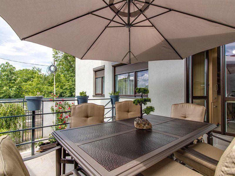 Inchiriem un superb apartament de 2 camere, bucătărie, baie dubla (cada mare + cabina dus), terasa mobilată si curte superba – pozitionat la parterul unui imobil, ce a fost construit in 2012, ce are paza la parter 24/24 , situat intr-o zona excelenta, ferita de zgomotul urban si plina de spatii verzi, langa padurea Baneasa.