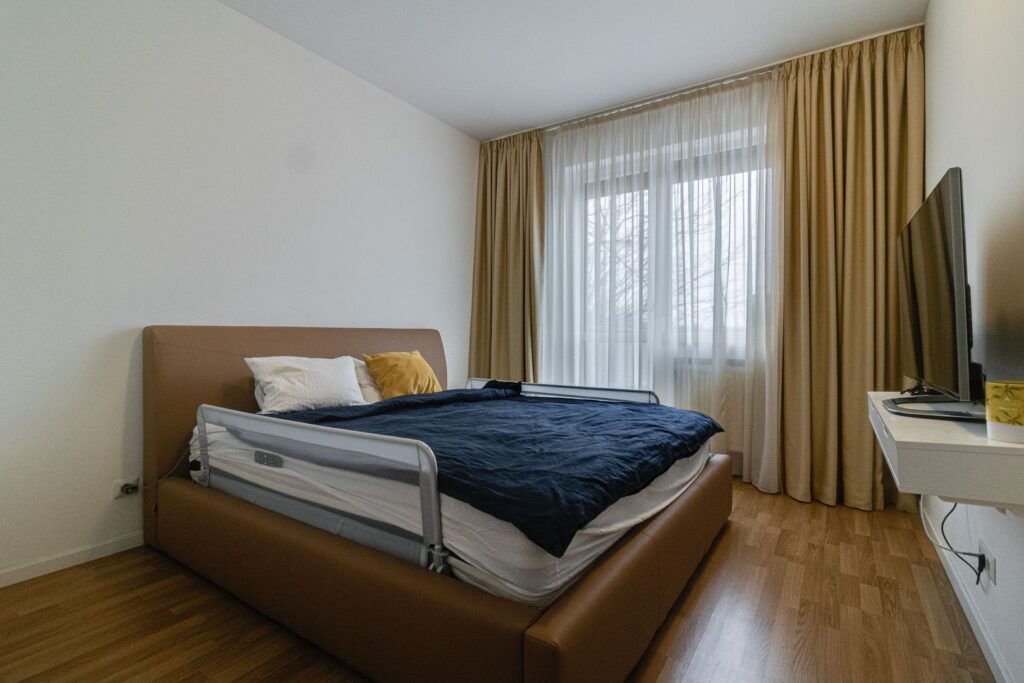 Apartamentul are o suprafata utila de 97 mp, 2 dormitoare, 2 bai, bucatarie inchisa si o terasa inconjurata de vegetatie liniste si intimitate.