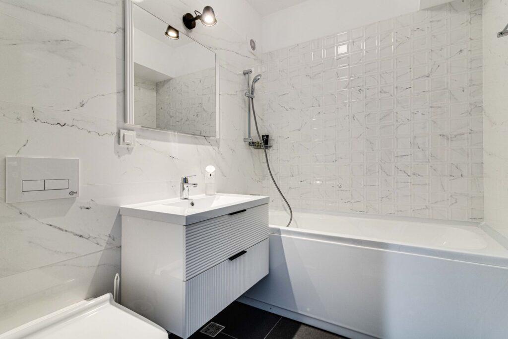 2 băi – una dintre ele situată în dormitorul matrimonial, dotată cu cadă