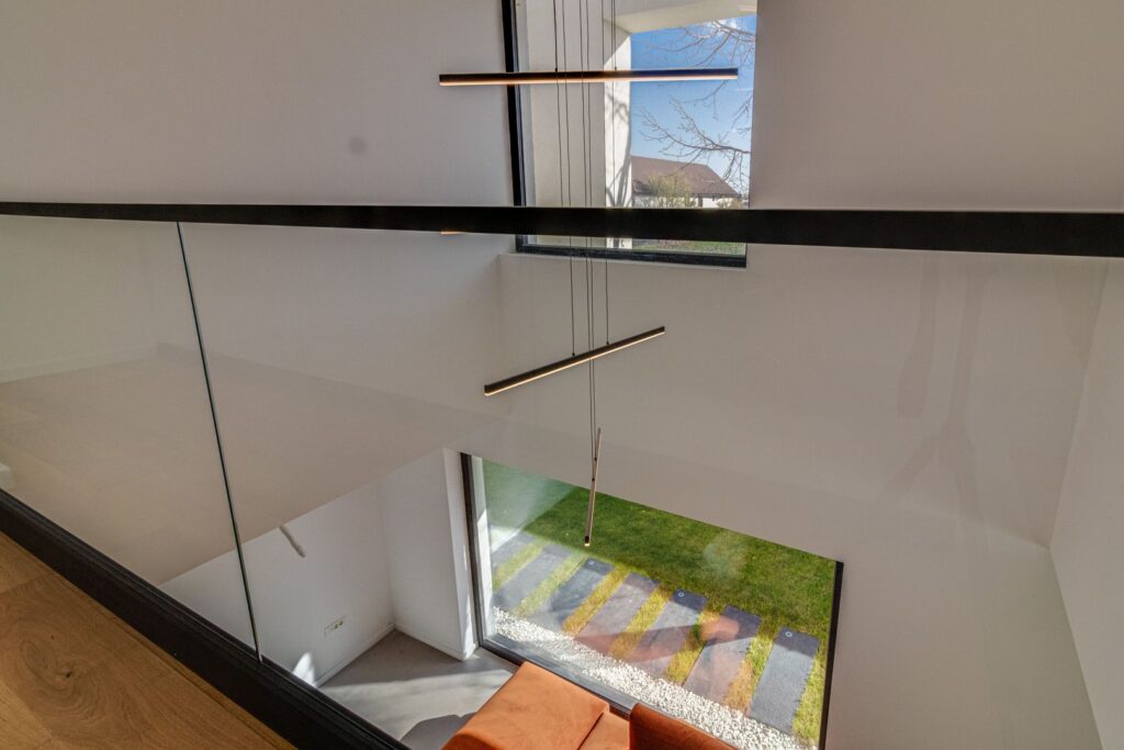 La parter regăsim bucătăria, diningul si livingul( pe o inaltime de 6 m), o gradina japoneza si un dormitor + o baie.