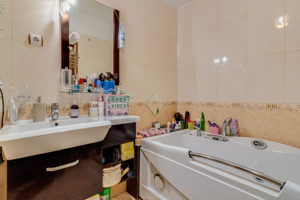 Hol, baie cu cada, ,dormitor , bucatarie open space, zona dining si living;
