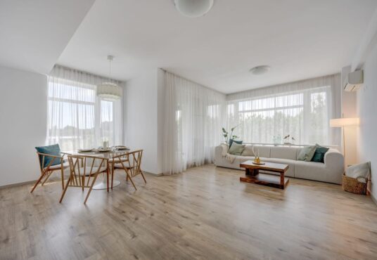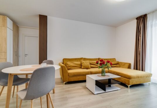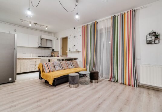 Optim Estate propune spre închiriere un apartament deosebit situat în zona Băneasa, într-un cadru liniștit și plin de verdeață, Cu o suprafață utilă de 70 mp, apartamentul este compartimentat astfel: un hol generos care face legătura către un living spațios cu bucătărie deschisă, un dormitor, o baie și o terasă de 10 mp. Locuința este […]
