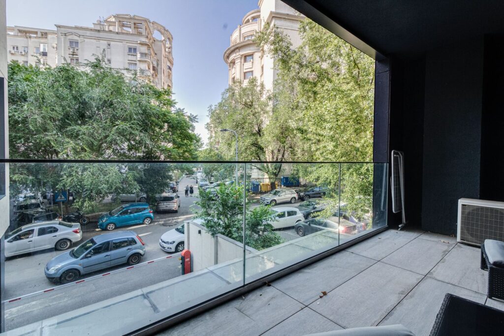 Vederea de pe balcon este libera, foarte placuta, si surprinde modest si pe alocuri cladiri cu arhitectura eleganta.